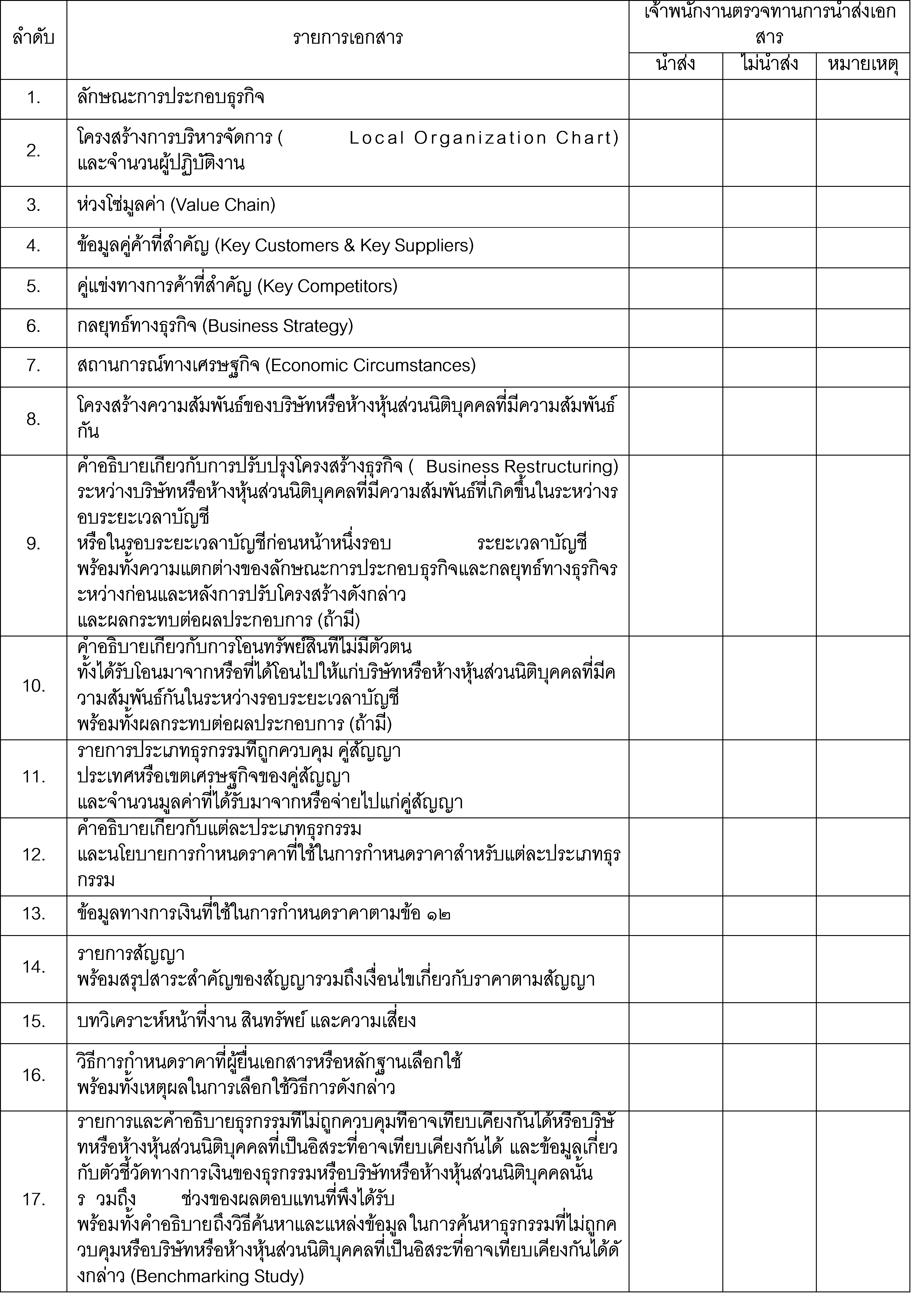 【THAILAND】คำขอส่งเอกสารการกำหนดราคาโอน (ไฟล์ท้องถิ่น)จากสำนักงานสรรพากรท้องถิ่น